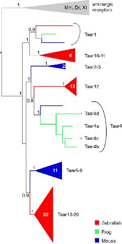 Genes referenced: omp taar1 taar2 taar3 trpc2