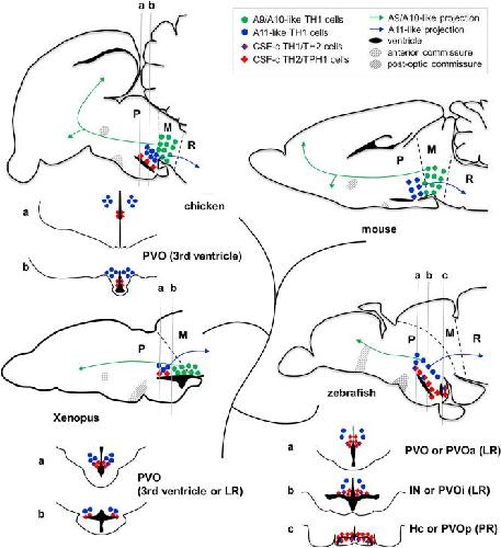 Xavier, Comparative analysis of monoaminergic cerebrospinal fluid-contacting cells in Osteichthyes (bony vertebrates). 2017, Pubmed , Xenbase