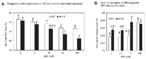 Wang, PYR/PYL/RCAR abscisic acid receptors regulate K+ and Cl- channels through reactive oxygen species-mediated activation of Ca2+ channels at the plasma membrane of intact Arabidopsis guard cells. 2013, Pubmed