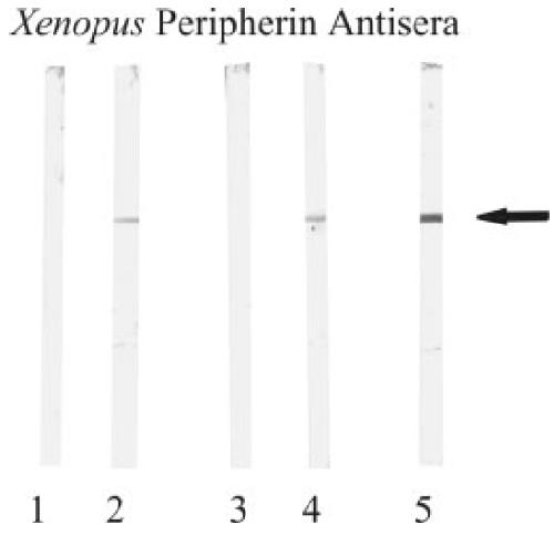 Fig. 5. Characterization of peripherin antisera on Western blots of