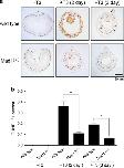 Figure 7. Mad1 knockout enhances intestinal epithelial cell proliferation during T3-induced metamorphosis. Premetamorphic stage 54 tadpoles were treated with 5ânM T3 for 0, 2 or 3 days and were killed 30âmin after EdU injection. (a) Cross-sections of the intestine from the resulting tadpoles were stained for MGPY. Note there were more epithelial cells in clusters strongly stained by MGPY in the cross-sections of the intestine from Mad1 (â/â) tadpoles treated with T3 for 3 day compared with wild-type ones. Arrowheads indicate the clusters of epithelial cells. (b) Cross-sections of the intestine from the tadpoles were double-stained for EdU (cell proliferation) and with Hoechst (DNA). Again, there are more EdU-positive epithelial cells in clusters in the T3-treated Mad1 (â/â) tadpole intestinal cross-sections compared with the wild-type ones. The dotted lines depict the epitheliumâmesenchyme boundary. Scale bar, 50âμm. (c) Cell proliferation is significantly increased in Mad1 (â/â) tadpoles treated with T3 for 3 day compared with wild-type ones. Red colored EdU positive areas in epithelium were measured and normalized against the total cellular area in epithelium determined by Hoechst staining. The statistical significance of the differences was determined by Studentâs t-test (*P<0.05)