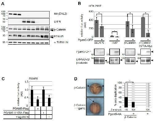 The phosphatase Pgam5 antagonizes Wnt/β-Catenin signaling in embryonic anterior-posterior axis patterning.