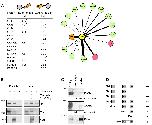 Fig. 1. Pgam5 physically interacts with Arrb2 and Dvl2. (A) Interactome analysis by quantitative HPLC-MS-MS with Arrb2 as a bait and the corresponding back-tagging experiments yielded various protein kinases and identified Pgam5 as a novel binding partner of Dvl2 and Arrb2. Relative abundances are summarized. Asterisks indicate that proteins were detected in only one biological replicate. The interaction network with selected preys was illustrated using Cytoscape; the bait proteins Dvl2 and Arrb2 are colored yellow and orange, respectively; kinases are shown in green; phosphatases in red. The line width indicates the abundance of the respective preys relative to Dvl2 or Arrb2 as bait. (B) Co-immunoprecipitation of overexpressed proteins confirms the interaction of Pgam5 with Dvl2 and the Dvl2-Arrb2 complex. (C) Endogenous co-immunoprecipitation of human PGAM5 and ARRB2 with DVL2. Band intensities have been quantified and relative intensities are given below the respective blots. (D) The binding site of Pgam5 to Dvl2 was mapped to the region interspacing the PDZ and DEP domains of Dvl2 by co-immunoprecipitation of Pgam5-HA with a series of truncated Myc-Dvl2 constructs, as illustrated. |