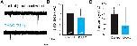 D-Serine is an endogenous coagonist of NMDARs at retinotectal synapses in the optic tectum. A, B, Example NMDAR-mediated retinotectal ESPCs recorded following optic chiasm stimulation in 0 mm Mg2+, in the presence of NBQX (20 μm) and PTX (100 μm), from Stage 47 tadpoles (A) before (black trace) and after (blue trace) wash-on of the NMDAR coagonist site antagonist L-689,560 (20 μm) and (B) agonist d-serine (500 μm, red). Insets, Averages of three trials during baseline and after 3 min of drug application. C, Mean relative changes in NMDAR-mediated EPSC amplitude measured during the last 3 min of drug application. D, Example AMPAR-mediated mEPSC traces recorded from tectal neurons at â70 mV before (top) and after d-serine (bottom) application. Average mEPSC (E) frequency and (F) amplitude across the population of cells before and after d-serine application are unchanged (n = 6, frequency: p = 0.95, amplitude: p = 0.35, paired t test). G, Examples of evoked AMPAR-mediated EPSCs recorded during a 50 ms ISI paired pulse protocol before (black) and after d-serine (red) application. H, Average PPR before and after d-serine application across the population of cells is unaltered (p = 0.60, n = 7, paired t test). I, Average NMDAR-mediated EPSC response decrement with RgDAAO (0.2 U/ml, blue, n = 5; ***p = 0.00037) wash-on and NMDAR-mediated EPSCs showing lack of effect of heat-inactivated RgDAAO (gray, n = 3, p = 0.70, t test). |