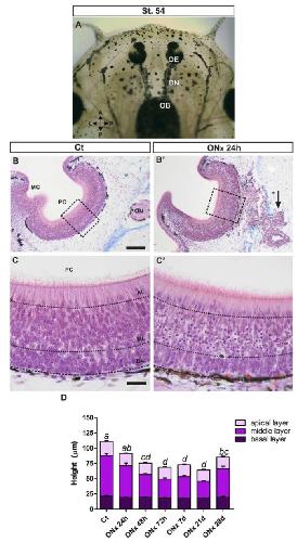 dynamic of the regenerative process that takes place in the OE of X. laevis larvae after bilateral