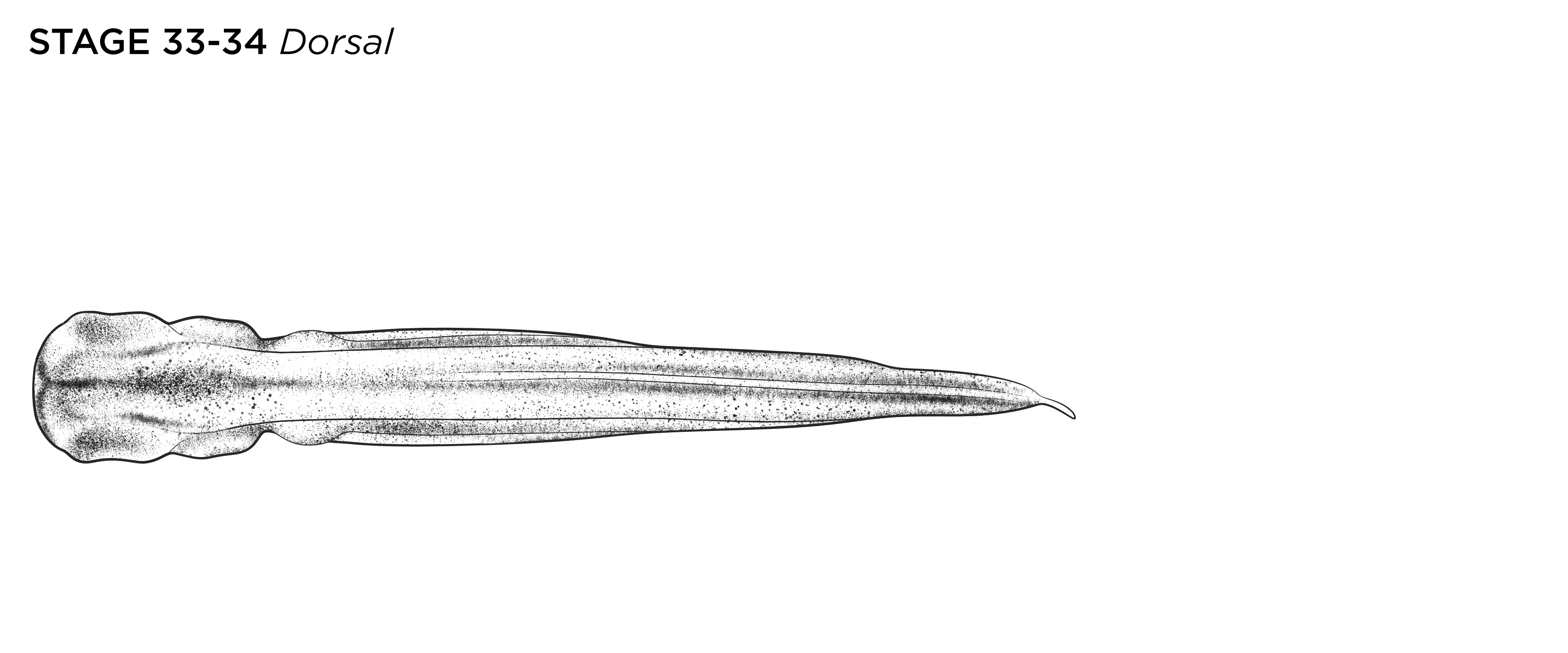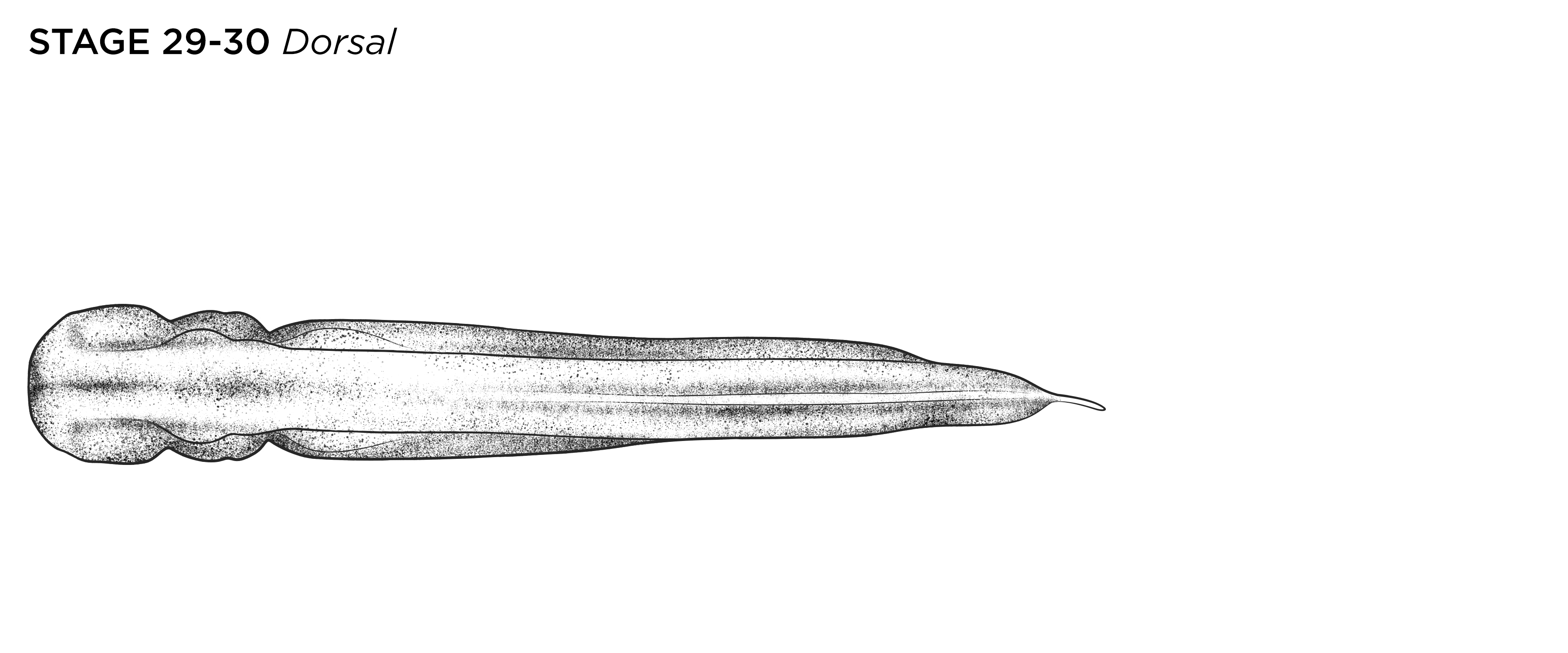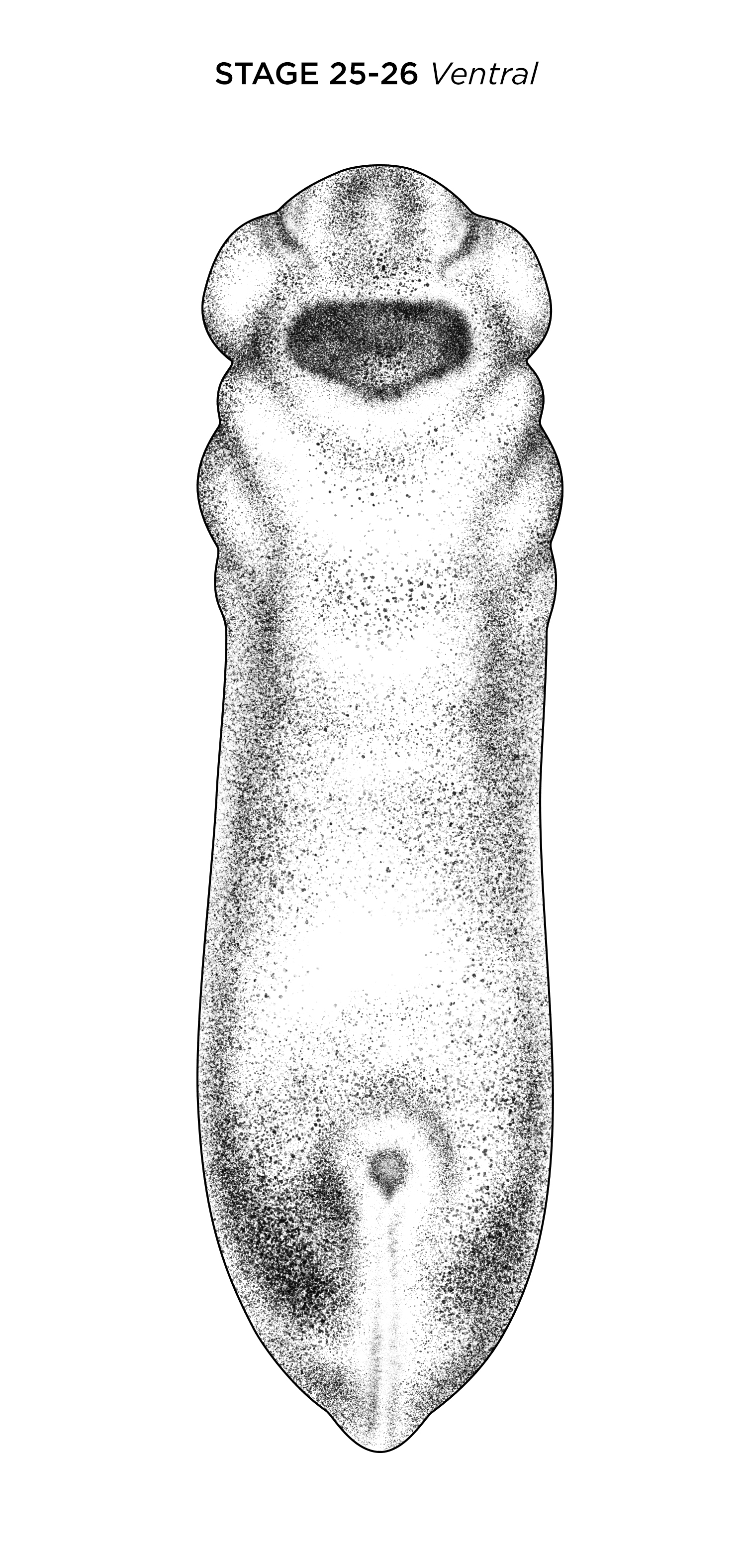 Xenopus laevis embryo at NF stage 25, ventral view, anterior up. Scale bar= 1mm. Illustration © 2021 Natalya Zahn, CC BY-NC 4.0. |