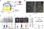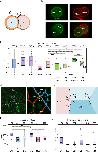 Supplementary Figure 7 | Dispersion assay. (a) Diagram of the assay. A clone of experimentally manipulated cells was produced within the BCR by injection of a single blastomere at the 32-cell stage. The distribution of the labelled progeny was determined at the early gastrula stage when endogenous separation occurs. (b-h) Representative examples. Live fluorescence images. Nuclei were stained with Hoechst, pseudocolored in red. Lower panels are enlargements of part of the main image. (i) Quantification of dispersion using Delaunay triangulation and represented as a Tukey boxplot. Comparisons to mesoderm (red) and to ephrin expression (purple) were done using one-sided Studentâs t-test. Numbers above, total number of BCRs. (j) Quantification of the relative heterotypic contact length. (b) When the clone was induced to a mesodermal fate, cells formed a tight cluster sharply delineated from the surrounding ectodermal BCR. (c) When the entire BCR was induced to mesoderm, the labelled clone was broadly dispersed. (d-h) Manipulation of a clone within an IMBCR. (d) C-cadherin overexpression had no effect. (e,f) caRho expression impaired dispersion (e), but a similar effect was observed when caRho was expressed throughout the IMBCR (f), indicating that the effect was not related to a difference in tension between the clone and the surrounding cells, but most likely to interference with intercellular migration. (g) Clones of ephrinB1/B3-expressing mesoderm cells remained confined in a compact area of the IMBCR. Note that control expression of the same ephrins throughout the entire IMBCR led to normal dispersion, demonstrating that, unlike caRho, ephrin expression did not impair intercellular migration, but generated a genuine process of cell sorting (i,j). (h) Replacement of C-cadherin with E- or N-cadherin had no effect. Scale bar, 200μm. |