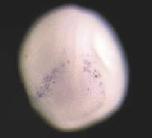 otop3 ( otopetrin 3) gene expression in Xenopus laevis embryo, assayed via in situ hybridization, NF stage 16, anterior view, dorsal up. |