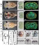 Fig. 1. Disruption of dorsal midline structures inhmmrmorphants. (A-C) Dorsal (d) views of the head region of Xenopus laevis embryos at stage (st.) 45, rostral to the left. Control embryo (A) and embryos injected into both dorsal animal blastomeres at the eight cell stage with hmmr morpholino (MO; B) or hmmr MO together with full length (FL) hmmr (C). Brains outlined in white, white and red brackets indicate wildtype and reduced interocular distance, respectively. Arrowhead in (B) points to pigmented optic stalk. (D-F) Dorsal views of dissected forebrains (fb), brain area indicated by yellow boxes in (A-C); brackets indicate level of fb width measurement, arrowheads point to bilateral olfactory bulbs (OB). Note decrease in OB size and fb width in (E) and restoration of both in (F). (G-I) Fluorescently labeled nuclei and F-actin with immunofluorescence detecting α-tubulin (Tuba4a) reveal morphology of control (G) and treated (H, I) brains transversally bisected at level indicated in (D-F); scale bars: 50 µm. Ventricular lumina outlined in white, yellow arrowheads indicate septum separating hemispheres; note lack of midline separation and absence of lumina in morphant indicated by white arrowheads in (H). Restoration of ventricular lumina and septal structure (I). (J, K) Quantification and statistical analysis of fb width (J) as indicated in (D-F) and fb phenotypes (K). WT: normal lumina / septum, mild: lumina / septum reduced; severe: lumina / septum absent. Number of embryos indicated in each graph. (L-N) not expression in control (L, M) and morphant (N) neurula embryos after whole-mount in situ hybridization (anterior views). Arrowheads indicate medial convergence of bilateral not-expressing cell populations. (Lâ-Nâ) Transverse sections at the forebrain level as indicated in (L-N), neural tissue outlined in white. Note failure of medial convergence in morphant embryos (N, Nâ). Scale bars: 100 µm. l, left; r, right; v, ventral. |