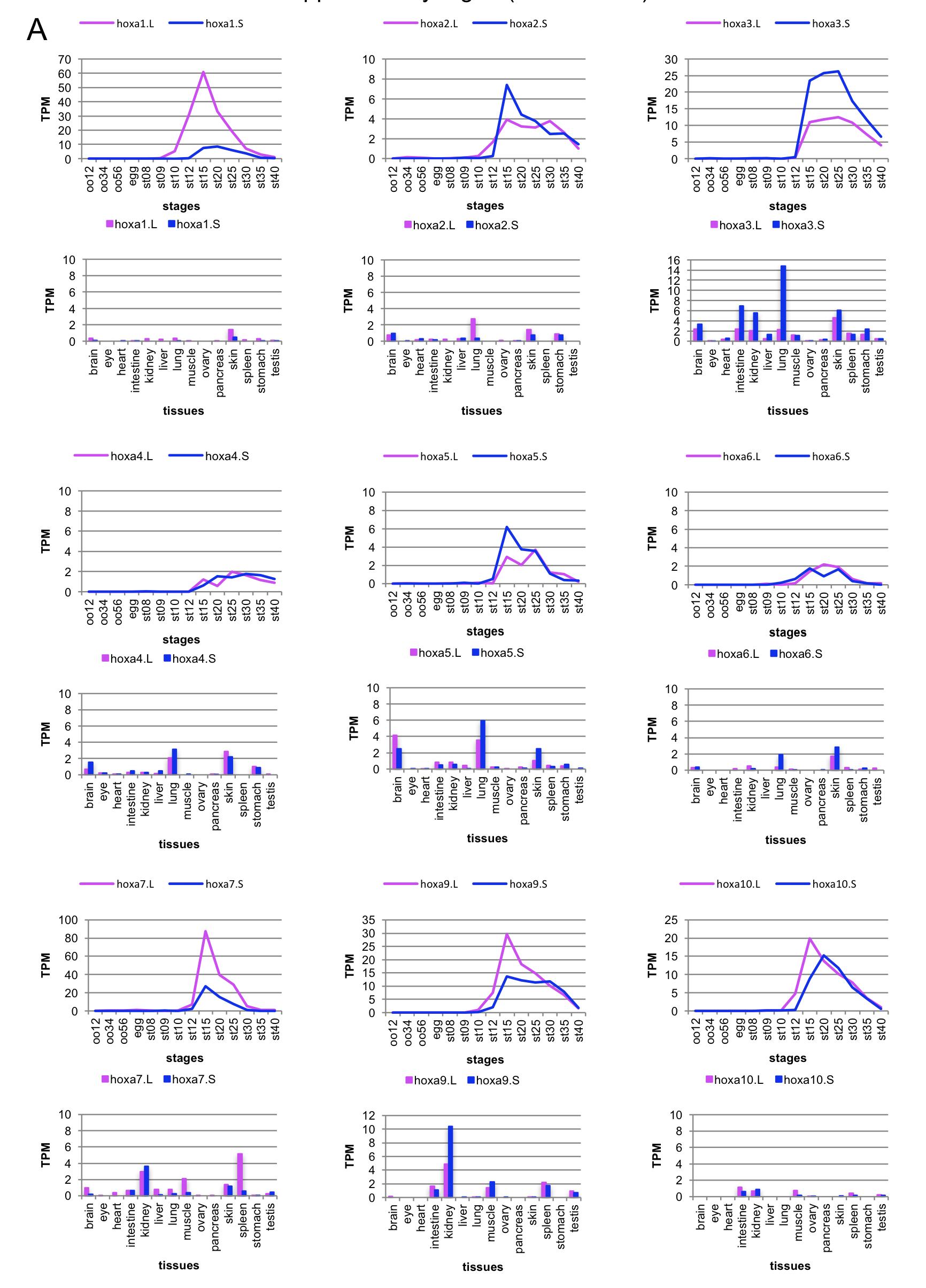 Fig. S3. Expression profiles of all 76 X. laevis hoxgenes. |
