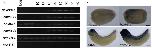 Fig. 4. Temporal expression of hox genes during developmental stages 8 to 40. (A) Expression levels of 50 genes that had TPM morethan 5.0 at some point was normalized so that the peak TPM is 1. By clustering analysis, genes were grouped into eight “expressiongroups” (ExpG). hoxb4.L was exceptional, since the egg showed the highest value, but to observe zygotic expression, it was normalizedto the value at stage 40. Nevertheless, because of its unique pattern, this was not included in any ExpG. (B) Expression profiles of eachExpG. The patterns are mostly overlapping. (C) Summary of expression profiles. Four of the six PG1 (labial) genes are categorized inExpG1 (the other two are ExpG4), and expressed early, and PG11 to 13 genes in the posterior group are expressed late (ExpG8) or notuntil after stage 40, whereas the pb, central, and posterior PGs 9 and 10 showed no temporal collinearity. Asterisks indicate homeologsthat belong to the same ExpG. |