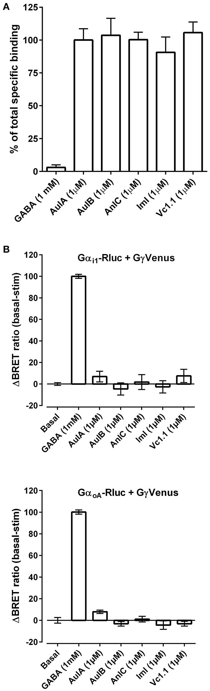 Cuny, γ-Aminobutyric acid type B (GABAB) receptor expression is needed for inhibition of N-type (Cav2.2) calcium channels by analgesic α-conotoxins. 2012, Pubmed