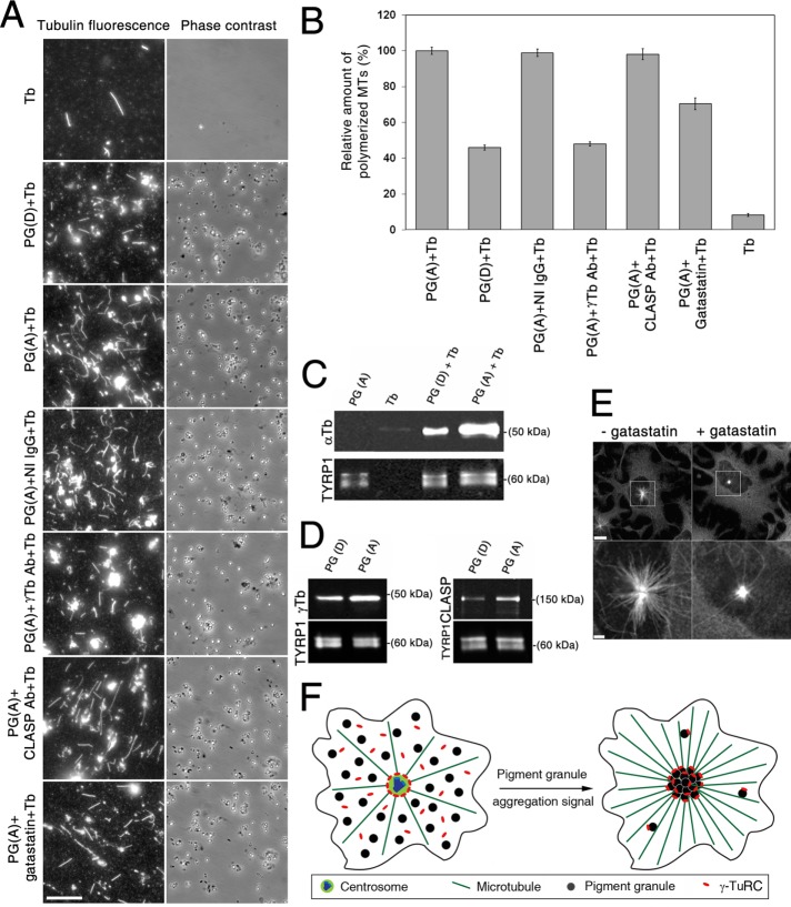 Microtubule (MT)-based transport can be regulated through changes in organization of MT transport tracks, but the mechanisms that regulate these changes are poorly understood. In Xenopus melanophores, aggregation of pigment granules in the cell center involves their capture by the tips of MTs growing toward the cell periphery, and granule aggregation signals facilitate capture by increasing the number of growing MT tips. This increase could be explained by stimulation of MT nucleation either on the centrosome or on the aggregate of pigment granules that gradually forms in the cell center. We blocked movement of pigment granules to the cell center and compared the MT-nucleation activity of the centrosome in the same cells in two signaling states. We found that granule aggregation signals did not stimulate MT nucleation on the centrosome but did increase MT nucleation activity of pigment granules. Elevation of MT-nucleation activity correlated with the recruitment to pigment granules of a major component of MT-nucleation templates, γ-tubulin, and was suppressed by γ-tubulin inhibitors. We conclude that generation of new MT transport tracks by concentration of the leading pigment granules provides a positive feedback loop that enhances delivery of trailing granules to the cell center.