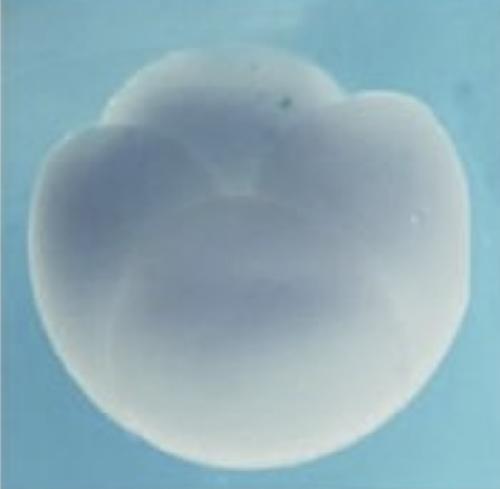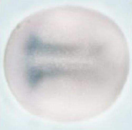 zc4h2 (zinc finger, C4H2 domain containing ) gene expression in Xenopus laevis/tropicalis embryo, assayed via in situ hybridization, NF stage 3 (4-cell), animal view. |