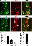 Prdm13 expression in the retina upon Ptf1a gain and loss of function. a Double fluorescent in situ hybridization with prdm13 (red) and ptf1a (green) probes on wild type retina at stage 35/36 and 40. Right panels are enlargement of central or peripheral retina (white squares). Arrows show double labelled cells. b Quantification of the percentage of ptf1a
