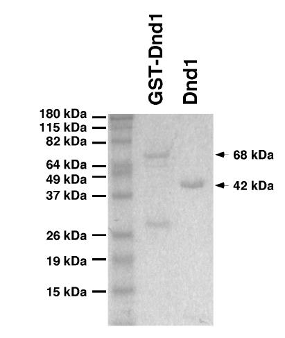 Figure S1. Coomassie blue staining showing purified GST-Dnd1 and Dnd1. Development 144: doi:10.1242/dev.152611: Supplementary information Development • Supplementary information |