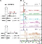 FIGURE 9. Interactions within a heavily modified region of human 18S rRNA. (A) Base-pairing between human 18S rRNA and guide RNAs SNORA24, SNORA28, and SNORD98 assigned for modification of positions 863, 866, and 867, respectively. (B) Predicted interference between Ψ863, Ψ866, and Gm867 (top row) and differentially modified fragments (second and third rows) experimentally detected by classical biochemical techniques (Maden and Wakeman 1988). Modified positions are colored in blue. |