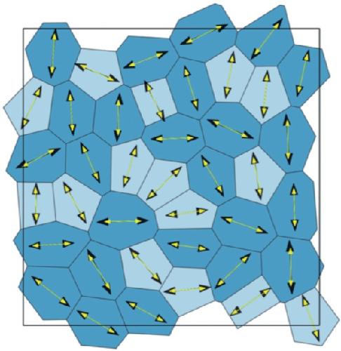 Fig. D1. (a) An example of force chains in a monolayer, with 800 cells and is excluded because is fails (D.1a) (c), despite satisfying (D.1b) (e). (Colour in online.) |