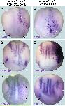 Fig. S6. Neurog1and neurog2 expression in regions of six1/eya1 and sox3 coexpression. A:Placodal expression domains of neurog1 and neurog2 in Xenopus laevis. B: Since Six1/Eya1 and Sox3 synergize in activation of the Neurogenins, placodal expression of neurog1 and neurog2 is activated where Six1/Eya1 and Sox3 expression domains overlap (see (Schlosser and Ahrens, 2004). This interpretation is in conflict with a previous study suggesting that the pax3 expressing profundal placode is located in the sox3 free area between neural plate and lateral sox3 domains (Schlosser and Ahrens, 2004). However the extent of sox3 expression in the lateral domain may have been underestimated in our previous study due to relatively weak staining after double in situ hybridization. It is currently not clear why hes8 and other Hes genes are expressed in a similar pattern to neurog1 since the present study did not find evidence of Sox3-Six1/Eya1 synergy; possibly Six1 and Eya1 synergize with other factors than Sox3 which are expressed in a Sox3-like pattern in activating these Hes genes. Asterisk marks area of prospective adenohypophyseal placode, where neurog2 is transiently expressed but quickly downregulated (Schlosser and Ahrens, 2004). Abbreviations: L: lateral domain of Sox3 expression; NC; neural crest; NP: neural plate; Ol: olfactory placode; P: posterior placodal area; PrV: profundal/trigeminal placode. |