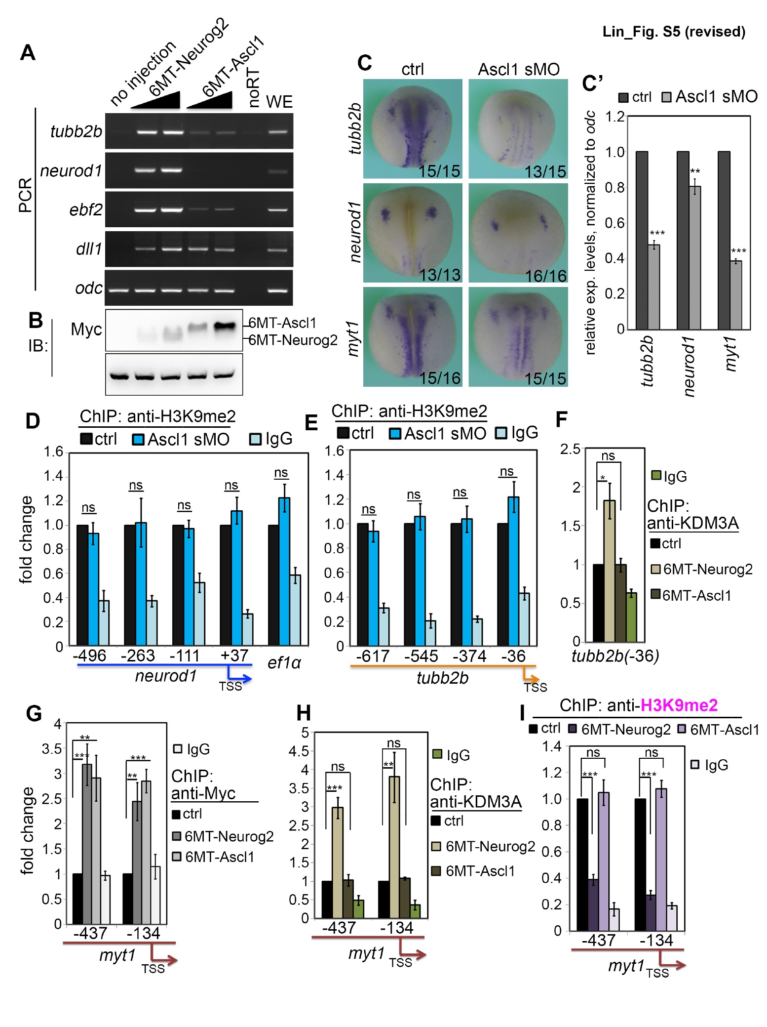 Neurog2 and Ascl1 on the promoter region of myt1. Both ectopic Neurog2 and Ascl1