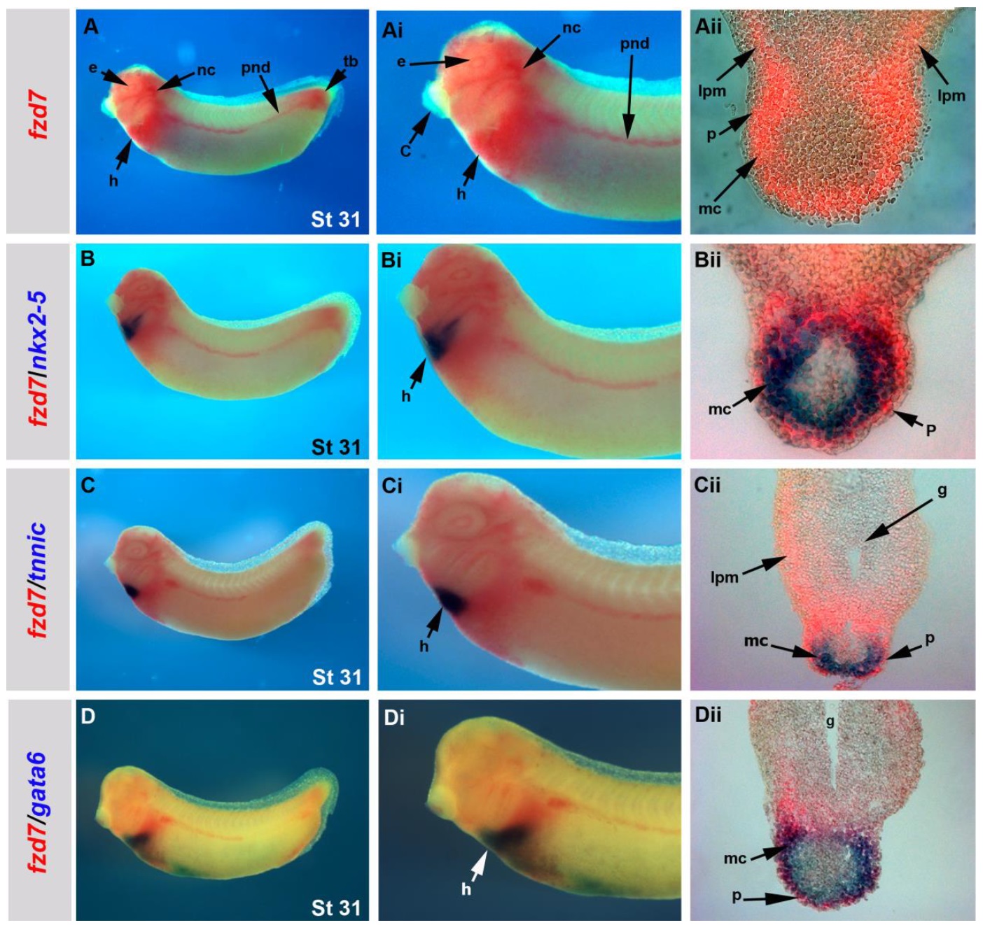 presumptive heart region. (C-Cii and D-Di): fzd7 and wnt11-R expression at stage 25.