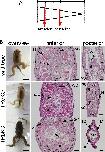 Figure 7. Effect of TRα and TRβ knockout on intestinal remodeling. (A) Comparison of the intestinal lengths of wild-type, TRα-knockout, and TRβ-knockout stage-63 and stage-65 tadpoles. Data are expressed as mean ± SE. Sample number is indicated in each column. Significant differences between the indicated groups were determined by performing a Bonferroni test. *P < 0.05. (B) Comparison of the intestinal lengths of the TRβ-knockout stage-65 tadpoles and wild-type froglets 14 to 17 and 15 to 18 days after stage 62, respectively. Data are expressed as mean ± SE. Sample number is indicated in each column. There was no significant difference based on a Student t test. (C–H) Cross sections of the intestine at the indicated stages. Intestinal fragments were cut 6 to 9 mm from the pylorus at the anterior part of the small intestine. Images are representative of three individuals examined per panel. (C–E) Wild-type (C) stage-63 and (D) stage-65 tadpoles and (E) froglets. (F) TRα-knockout stage-65 tadpole. (G and H) TRβ-knockout (G) stage-63 and (H) stage-65 tadpoles. Sections were stained with hematoxylin and eosin. The number of days from stage 62 are shown in parentheses. Scale bars, 0.1 mm. Image from "Thyroid Hormone Receptor α– and β–Knockout Xenopus tropicalis Tadpoles Reveal Subtype-Specific Roles During Development ." Keisuke Nakajima, Ichiro Tazawa, Yoshio Yaoita Endocrinology, Volume 159, Issue 2, February 2018, Pages 733–743, https://doi.org/10.1210/en.2017-00601. Reprinted with permission from AAAS. |