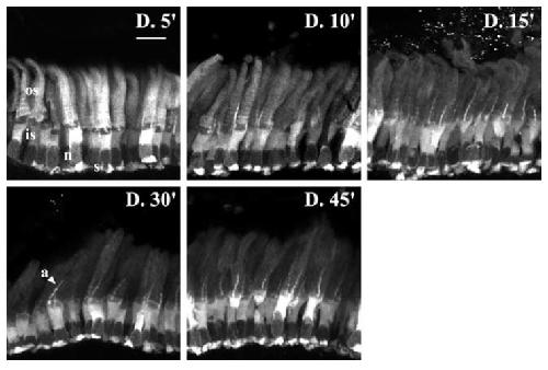 migrates rapidly to the IS during dark-adaptation. Following 45 min of light