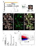 Fig. 3. Mov10 regulates MZT through RISC. A: Schematic of developmental time periods and the HU assay. The MZT spans between stage 1 and stage 10. The MBT lies between stages 8 to 9. EGT occurs between stage 9 to 9.5. HU treatments lasted from the two-cell stage to stage 9.5. At the two-cell stage one of the blastomeres was injected with fluorescein-tagged morpholinos and the embryos were treated with HU until stage 9.5. BâD: Images of stage 9.5 embryos, where one cell had been injected with morpholino, targeting a positive regulator of MZT (B56e) at the 20-cell stage. A total of 22 embryos were injected, and 21 of those showed the expected phenotype. Green arrows point to the live progeny of the injected cell in one of the cases shown. White arrowheads point to the dead progeny of the uninjected cell. EâG: Images of stage 9.5 embryos, where only one cell was injected with m-MO. A total of 22 embryos were injected and all of them showed the expected phenotype. H: qRT-PCR of cyclin A1 levels in control and m-MO embryos at indicated stages. Error bars represent SEM. NS- Not significant, *P<0.05 (Studentâs t-test, two-tailed). I: Differential expression results for maternal Mov10 morpholino (m-MO) injected (Mov10) vs. control embryos (C), X-axisaverage expression value (TMM-normalized Counts Per Million, log2 scale) of each X. laevis gene and y-axis is log2 (Mov10/C). Each point is a single gene: groups of genes colored red or blue had significantly greater than or less than 1.5 FC difference (unlogged), respectively. Groups of genes colored pink or light blue also had significantly greater than or less than 10 FC difference (unlogged), respectively. The numbers of genes listed at the +/- 1.5 FC level include the genes with610 FC. Scale bar in G equals 100 mm for A an 300 mm for BâG. Gene identities and statistical analysis are in Supplementary Table S2 (accessible through NCBI GEO accession number GSE86382) |
