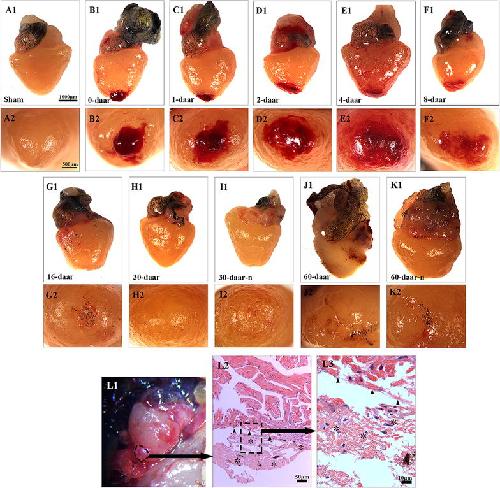 Results: We examined the regeneration of adult cardiac tissues of Xenopus tropicalis after resection of heart apex. We showed, for the first time, that the adult X. tropicalis heart can regenerate perfectly in a nearly scar-free manner approximately 30 days after injury via apical resection. We observed that the injured heart was sealed through coagulation immediately after resection, which was followed by transient fibrous tissue production. Finally, the amputated area was regenerated by cardiomyocytes. During the regeneration process, the cardiomyocytes in the border area of the myocardium adjacent to the wound exhibited high proliferation after injury, thus contribute the newly formed hearttissue.