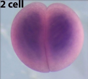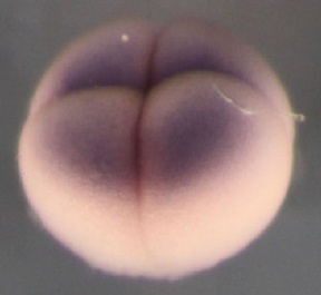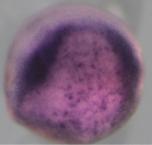 rapgef5 (Rap guanine nucleotide exchange factor 5) gene expression in Xenopus tropicalis embryo, assayed via in situ hybridization, NF stage 2, horizontal view, animal up. |