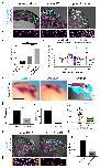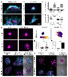 Extended Data Figure 5. Mesodermal stiffening promotes neural crest collective migration in a non-autonomous manner in vivo.(a–d) Non-autonomous effect of mesodermal myosin manipulations on NC migration in vivo. (a) Wild type labelled pre-migratory NC (cyan) grafted into pre-migratory wild type (WT), Myl9-MO, or CA-MYPT injected hosts (mesoderm in red). (b) Representative embryos showing normal NC migration in WT hosts and inhibited NC migration in Myl9-MO or CA-MYPT hosts. (c) Normalised NC migration N= 22 animals and (d) percentage of embryos displaying NC migration (one-way ANOVA P <0.0001; two-tailed t-test ***P<0.0006, ****P<0.0001, CI= 95%, N= 38 animals). Histograms in c, d, g represent media, error bars in c SD or s.e.m in d,g. (e–g) Effect of premature mesodermal stiffening on NC migration in vivo. (e) Wild type labelled pre-migratory NC grafted into non-migratory wild type (WT), or CA-MLC hosts. (f) Representative embryos showing premature NC migration in CA-MLC hosts, while no migration is observed in control embryos at this stage. (g) Percentage of embryos displaying NC migration, two-tailed t-test ****P<0.0001, CI= 95%, N= 20 animals. (h-k) Non-autonomous effect of DshDEP+ on NC migration. (h) Wild type labelled pre-migratory NC (cyan) was grafted into pre-migratory wild type (WT), or DshDEP+ hosts. (i) Representative examples showing NC migration in WT hosts and inhibited NC migration on DshDEP+ injected hosts (mesoderm in red). (j) Normalised NC migration and (k) percentage of embryos displaying NC migration (two-tailed t-test ***P<0.0002 ****P<0.0001, CI= 95% N= 14 animals). Histograms in j, k represent media and error bars (j) s.e.m and (d) SD. b,f,i are representative examples of 3 independent experiments. Scale bars (b) 200 μm, (f) 100 μm, (i) 150 μm. |
