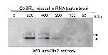 Fig. S3. The detectionlimit ofOtx2FLby western blotting. Embryos were injected with Otx2FL mRNA at various doses as indicated. Modified bands of Otx2FL was clearly detected when Otx2FL mRNAs were injected at higher than 200 pg per embryo. Embryonic lysate of 0.42 equivalent embryo was loaded per lane. Otx2FL was detected by western blotting with anti@Otx2 antibodies. Blue arrowheads, nascent proteinY magenta arrowheads, modified proteins. |