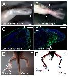 Dicer-Mo injected (C) and control (D) limbs, 45 days after Dicer-Mo injection/electroporation. IâV indicate digit identities. Scale
