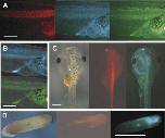 The larvae show blue fluorescence that turns into yellow fluorescence upon Cre recombinase action (Ryffel et al., 2003).