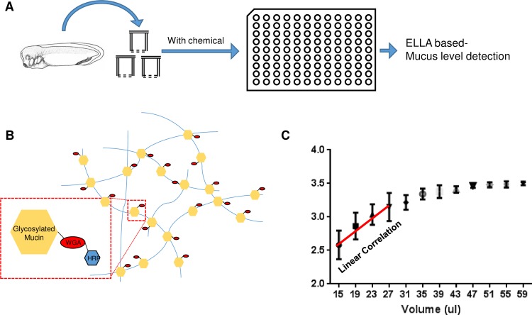 The airway epithelium in human plays a central role as the first line of defense against environmental contaminants. Most respiratory diseases such as chronic obstructive pulmonary disease (COPD), asthma, and respiratory infections, disturb normal muco-ciliary functions by stimulating the hypersecretion of mucus. Several muco-active agents have been used to treat hypersecretion symptoms in patients. Current muco-active reagents control mucus secretion by modulating either airway inflammation, cholinergic parasympathetic nerve activities or by reducing the viscosity by cleaving crosslinking in mucin and digesting DNAs in mucus. However, none of the current medication regulates mucus secretion by directly targeting airway goblet cells. The major hurdle for screening potential muco-active agents that directly affect the goblet cells, is the unavailability of in vivo model systems suitable for high-throughput screening. In this study, we developed a high-throughput in vivo model system for identifying muco-active reagents using Xenopus laevis embryos. We tested mucus secretion under various conditions and developed a screening strategy to identify potential muco-regulators. Using this novel screening technique, we identified narasin as a potential muco-regulator. Narasin treatment of developing Xenopus embryos significantly reduced mucus secretion. Furthermore, the human lung epithelial cell line, Calu-3, responded similarly to narasin treatment, validating our technique for discovering muco-active reagents.