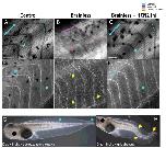 Figure 2. Functions of the very early brain include guiding and protecting correct embryo morphogenesis, which can be mimicked by ectopic expression of ion channels. Comparative images of muscle (A-C, under polarized light) and nerve (D-F, revealed by immunofluorescence against acetylated-alpha tubulin) structures of embryos that developed with a brain (Control), embryos that developed without a brain (Brainless), and embryos that developed without a brain and were injected with messenger RNA encoding the HCN2 ion channel (Brainless + HCN2 Inj). The absence of a brain during development leads to abnormal development of the muscles and the peripheral nerves, at considerable distances from the head, with disorganization of the body plan, myotomes lacking proper angles (magenta-dashed line in B), alterations in somite length (represented by two-headed arrows) and ectopic growth of nerve tissue (yellow arrows in E). By manipulating bioelectricity, for example via the mis-expression of HCN2, rescues the devastating muscle and nerve mispatterning that occurs in brainless animals (turquoise arrows in C, F). Rostral is right and dorsal is up. Scale bar = 100 μm. G, H. The effects of the drug (RS)-(tetrazol-5-yl)glycine during development depends on the presence or absence of the nascent brain in the embryo. While exposure to this drug does not cause developmental defects in control embryos (turquoise arrows in G indicate correct tail phenotype), it leads to severe deformities (yellow arrows in H demarcate bent spinal cord and tail aberrations) when the brain is not present to protect. Rostral is left and dorsal is up. Scale bar = 1 mm.