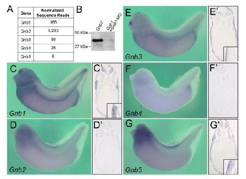 demonstrating the expression of G-protein beta subunits in stage 35 embryos. Insets show