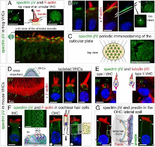 spectrins αII and βII, which are mainly detected in the apical region of hair cells, specifically in the