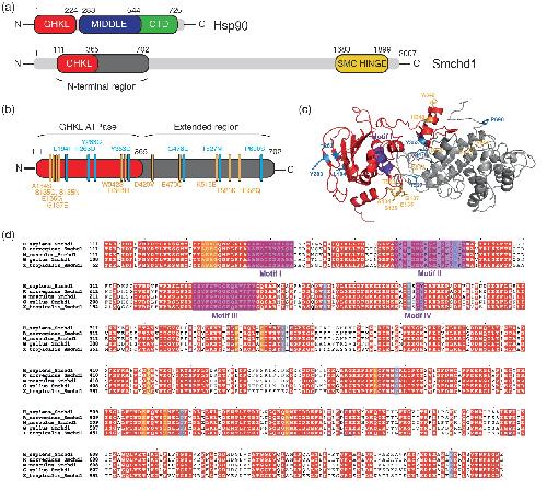 (d) Multiple sequence alignment of Smchd1 (111-702 residues) orthologue sequences from Homo sapiens,