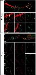 Previous to SCI, motor axons (red) project from the spinal cord to innervate AChR aggregates (green) of myotomal muscles to form NMJs (yellow) (A). Following SCI (asterisk), motor axons within the lesion site will undergo Wallerian degeneration (red dotted line). After 10DPT, collateral projections from rostral axons migrate towards caudal denervated muscle fibres. We envision two possible mechanisms for these observations. (B) These projections are branches of axons located rostral to the injury site, resulting in the formation of transiently bigger motor units. (C) These projections are âescape fibresâ that protrude from a rostral innervated NMJ to contact caudal denervated postsynaptic domains. In both cases, collateral axons will be guided by projections of terminal Schwann cells (light blue), which protrude from the denervated NMJs. Schemes at the right of B and C represent the origin of the motor axon collaterals (gray lines) from a pre-existing axon (black line). |