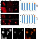 FIGURE 3:. High concentrations of wtXMAP215 induce the formation of supernumerary MTOCs in early X. laevis embryos. (a) Embryos were injected at the one-cell stage with either 300 nM wtXMAP215 (top two rows) or 25 ng wtXMAP215 mRNA (bottom two rows), fixed, and then processed for immunofluorescence. MTs were imaged using indirect immunofluorescence and are shown pseudo-colored in red, whereas DNA was labeled using Sytox Green nucleic acid stain (shown pseudo-colored in blue). Images show examples of cells with supernumerary MT foci displays in blastomeres isolated at the indicated stages. Cell boundaries are indicated by dashed outlines (first and third rows). For higher-magnification images, supernumerary MTOCs are overlaid with white asterisks. Scale bar = 50 µm (images in first and third rows). Scale bar = 30 µm (images in second and fourth rows). (b) The MT foci per cell were counted and plotted at the indicated stages as the percentage of cells containing a normal number of MTOCs (i.e., 1 or 2) or supernumerary MTOC numbers (i.e., >2). The top graph shows data from embryos injected with 300 nM wtXMAP215; the bottom graph shows data taken from single-celled blastomeres injected with 25 ng XMAP215 mRNA. (c) Embryos were injected at the one-cell stage with 25 ng XMAP215 mRNA and processed for immunofluorescence for α-tubulin (pseudo-colored in red) and γ-tubulin (pseudo-colored in green). Representative images of blastomeres from stage 8 embryos containing multiple MTOCs are shown.
