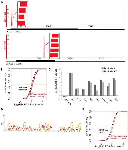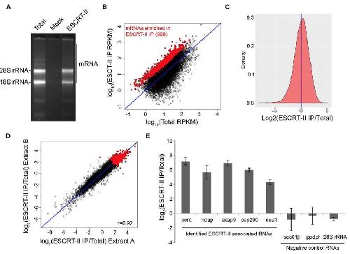 Points highlighted in red are two-fold enriched in the ESCRT-II IP over total egg extract RNA