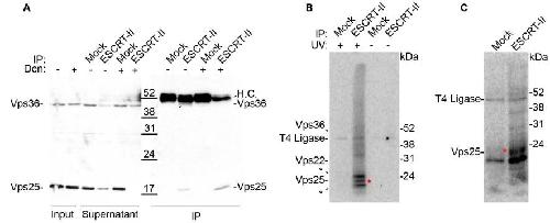 with our ESCRT-II polyclonal antibody. H.C.=heavy chain. B) Autoradiograph of a UV