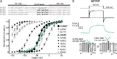 Barro-Soria, KCNE1 divides the voltage sensor movement in KCNQ1/KCNE1 channels into two steps. 2014, Pubmed