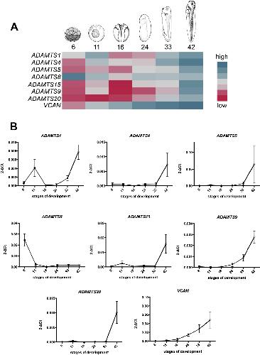 Expression of the ADAMTS genes family during Xenopus tropicalis development.