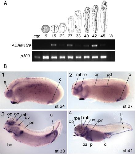 Expression of ADAMTS9 during Xenopus tropicalis development.