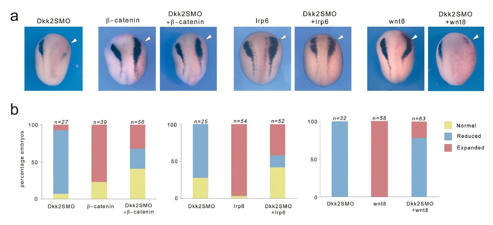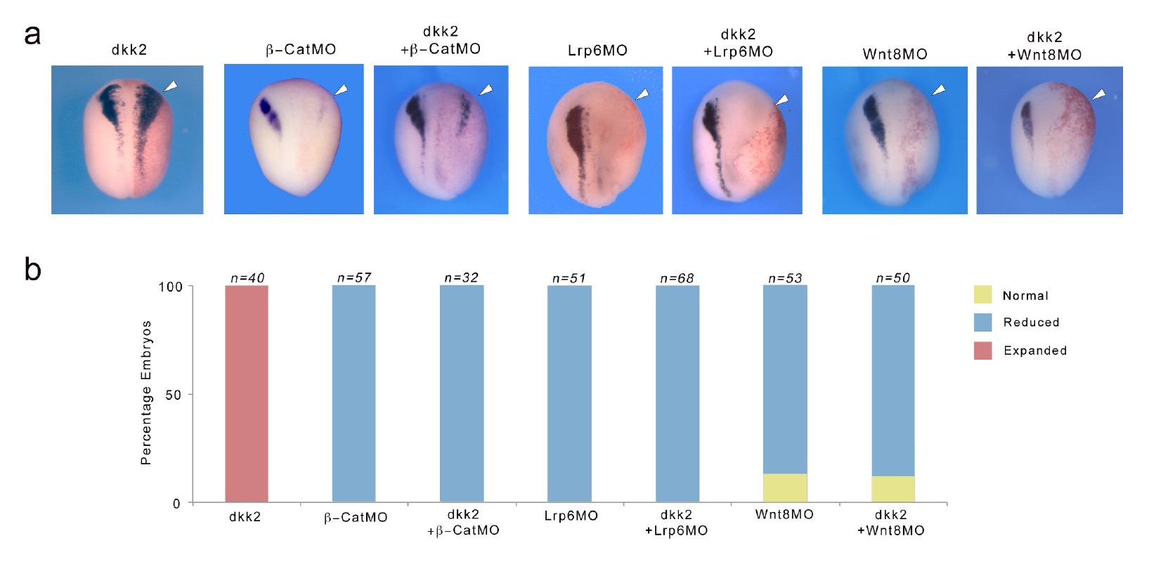 ???displayArticle.morpholinos??? ctnnb1 MO1 dkk2 MO1 dkk2 MO2 lrp6 MO1 wnt8a MO1