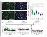 Figure 6. Pk2 and Vangl2 dynamics at shrinking and growing junctions. (A) Raw GFP-Pk2 pixel intensities strongly correlate with junction length changes. Inset shows a magnified view of the core of the plot. n = 71 junctions from five embryos across four experiments. (B) Raw GFP-Vangl2 pixel intensities strongly correlate with junction length changes. n = 37 junctions from 2 embryos from two different experiments. (C) GFP-caax displays only a weak correlation with junction length changes. Inset shows a magnified view of the core of the plot. n = 108 junctions from seven embryos across six experiments. Even when normalized against GFP-caax, Pk2 and Vangl2 levels show a strong correlation to junction length changes, as shown in Figure 6—figure supplement 1 Figure 6 DOI: https://doi.org/10.7554/eLife.36456.018 |