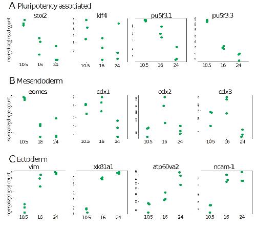 Figure S1: Temporal expression of germ layer-specific regulatory genes. Expression
