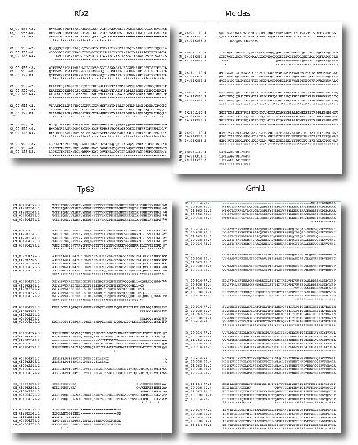coding sequence of selected splice variants for rfx2, mcidas, tp63 and grhl1,